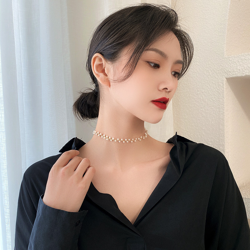 Korean short net red collarbone chain 2020 new fashion necklace crystal pearl necklace necklace necklace