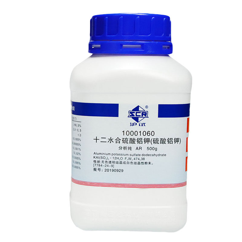 Potassium Aluminum Sulfate Dodecahydrate Chromium Potassium Sulfate AR Analytical Pure Superior Grade Shanghai Test Sinopharm Chemical Reagent Xilong Chemical Alum Powder Baifan Industrial Water Purification Alum Mordant 500g