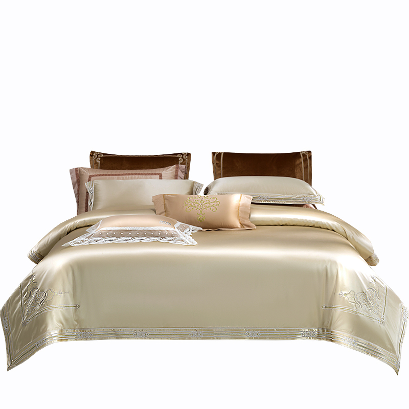 High-end European style true silk quilts covered with four sets of beds bedding light lavish pure cotton jacquard villa with six sets of beds