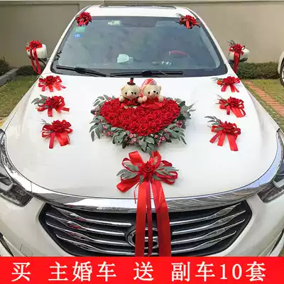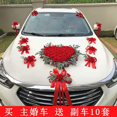 Chinese style Big Red main wedding car decoration car floral headdress set full set of supplies flower decoration wedding wedding arrangement wedding