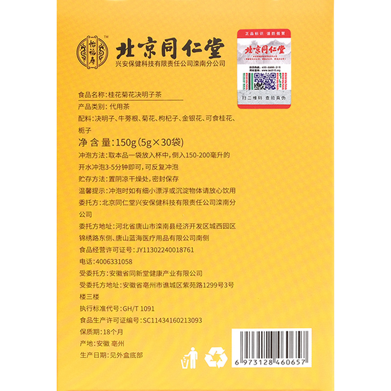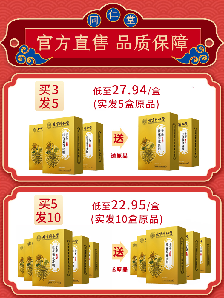 Beijing Tongrentang chrysanthemum cassia seed tea wolfberry honeysuckle osmanthus osmanthus burdock root stay up late health tea bag