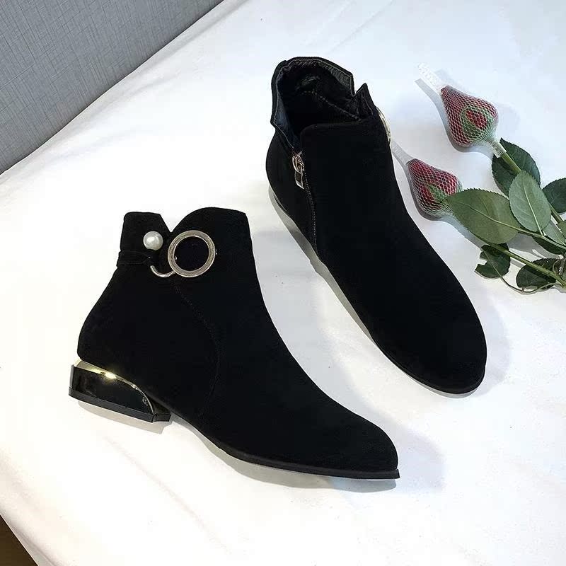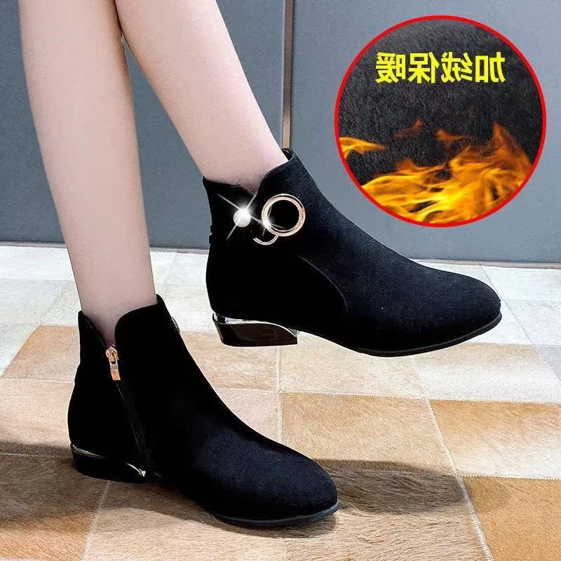 Suede short boots single boots all-match large size thick heel high heel women's shoes 2019 new winter boots