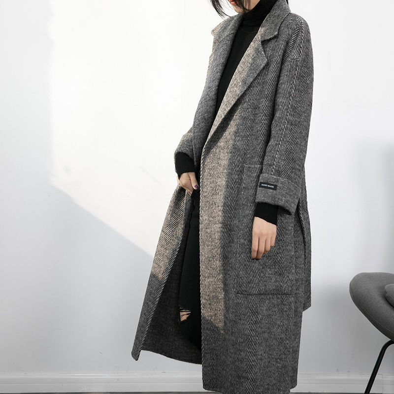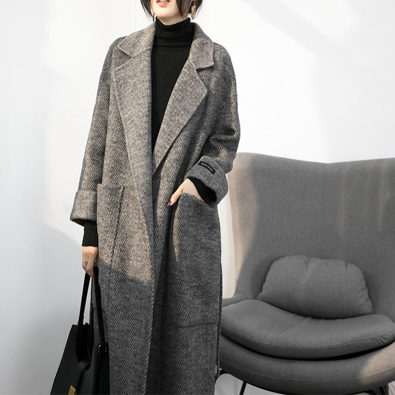 Claudie pasey Hepburn style autumn and winter double-sided woolen coat women's long loose tie high-end coat