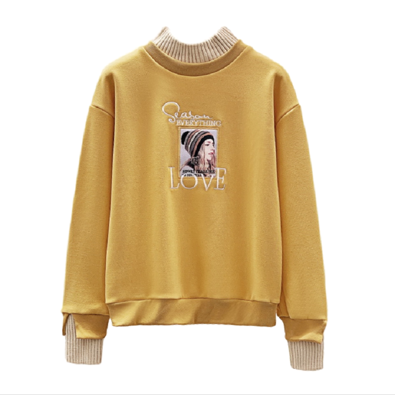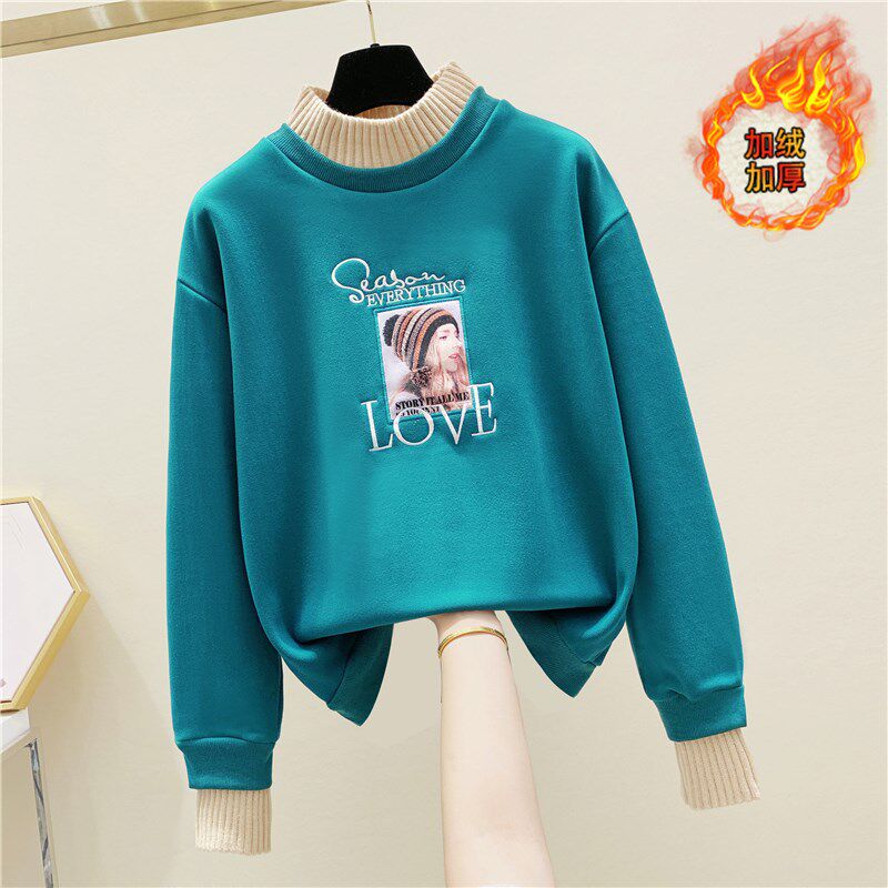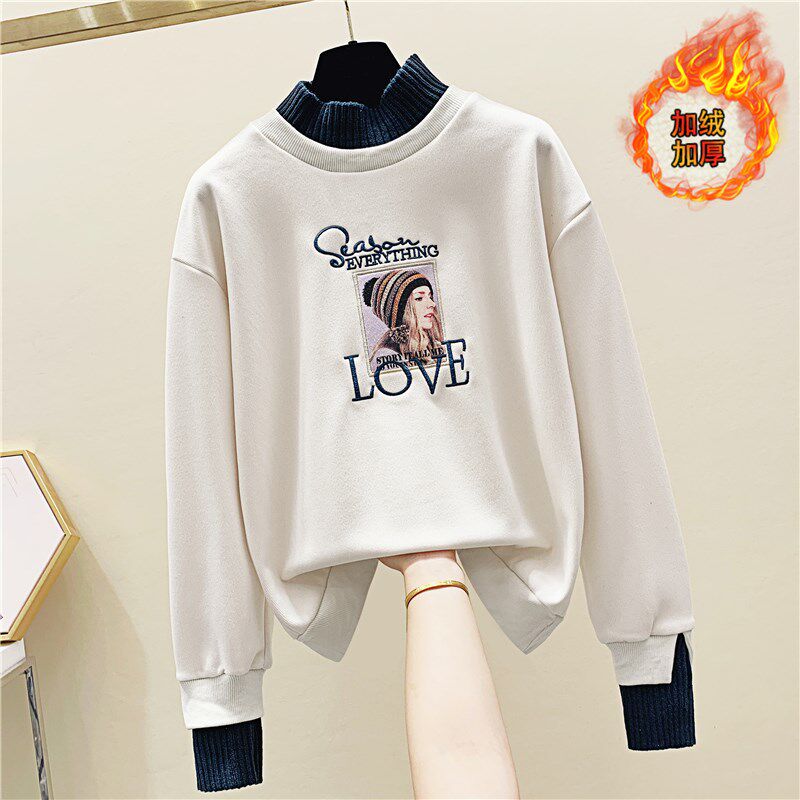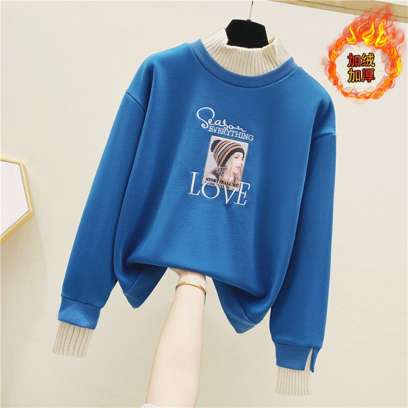 Korean yellow fake two-piece sweater women's spring and autumn new style plus velvet thickened Western style loose half turtleneck top tide ins