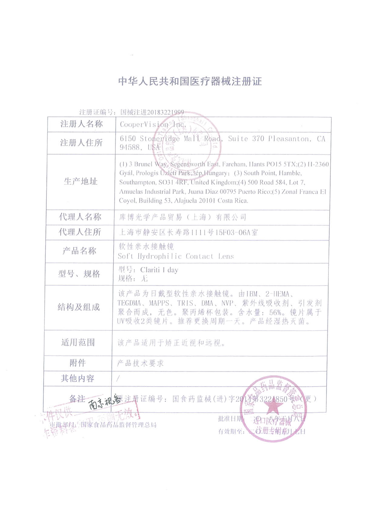 Cooper Optical Transparent Invisible Myopia Glasses Clear Oxygen Clear Day Throw 30 Pieces of Silicon Hydrogel Cooper Official Website