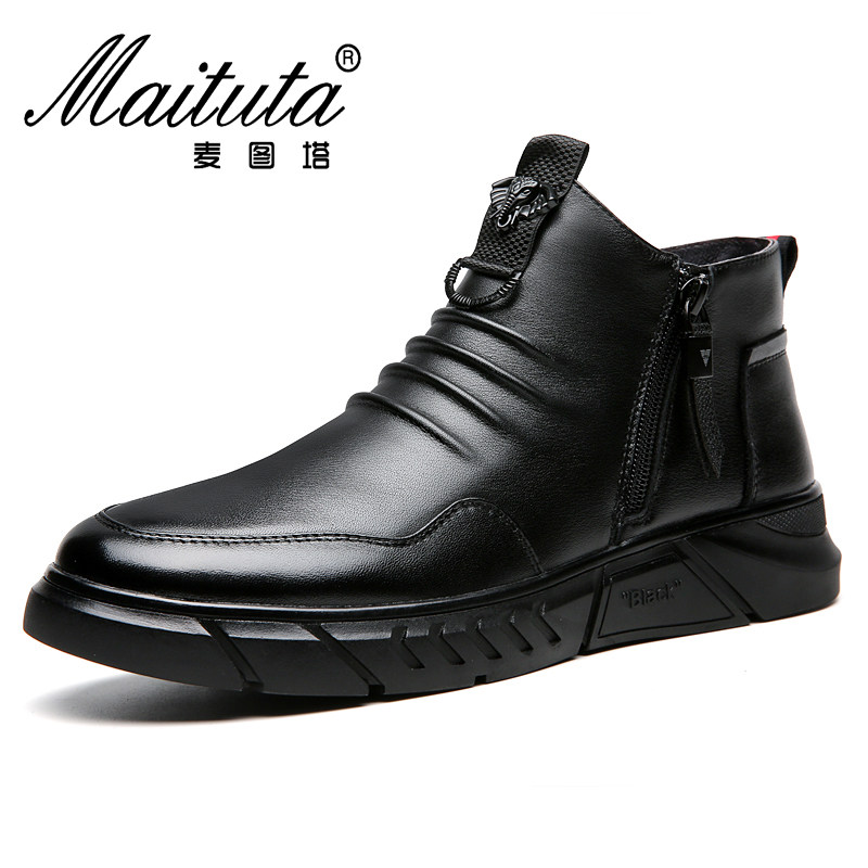 casual high-top leather shoes