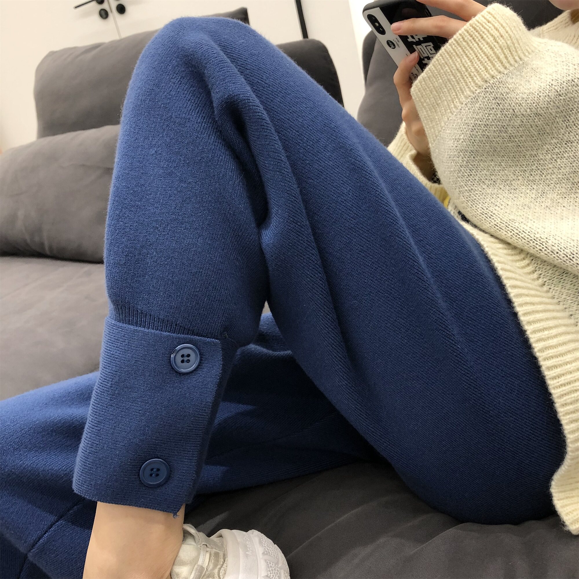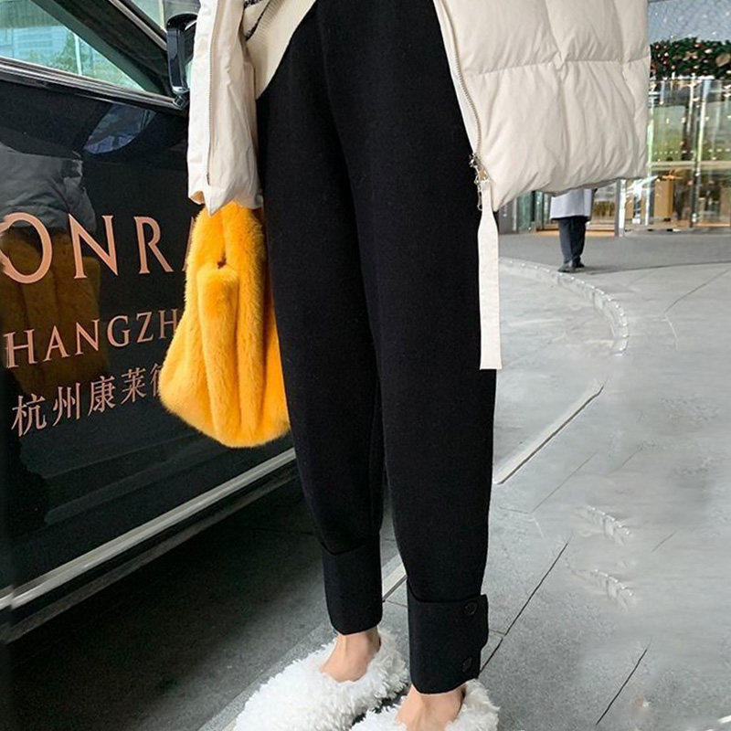 Knitted Grandma Female Spring and Autumn thin net red and lean casual rod pants high waist and beam foot sweatpants
