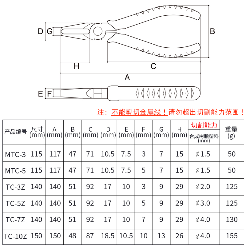 Japan imports 3 peaks three mountain cards MTC-3 5 plastic top TC-3Z TC-3Z 5Z 7Z 10 water gap pliers