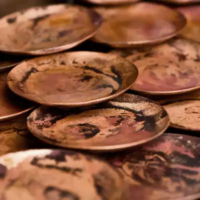 Color ink red copper coasters four packs (gift storage bags) six packs (gift storage bags) two coasters fired color pots and four coasters fired color pots