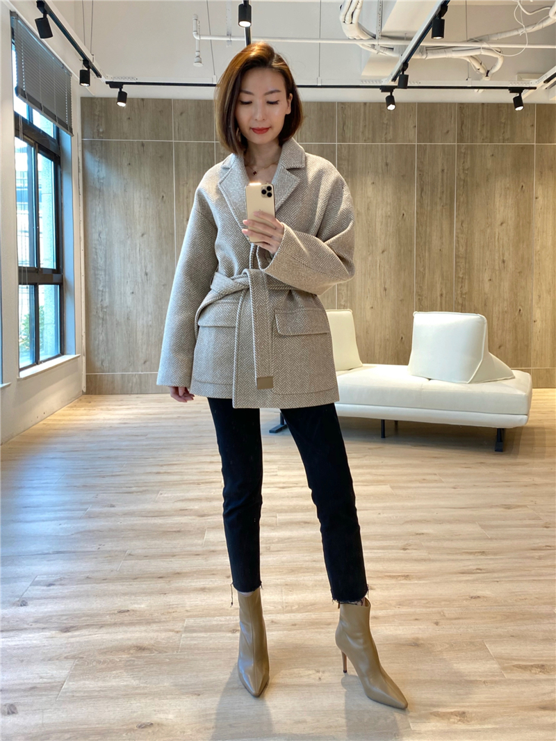 Jimmy Fashion Italy Imported LP Herringbone Wool Shorts Belt Coat Jacket 2 Colors Available New Arrival