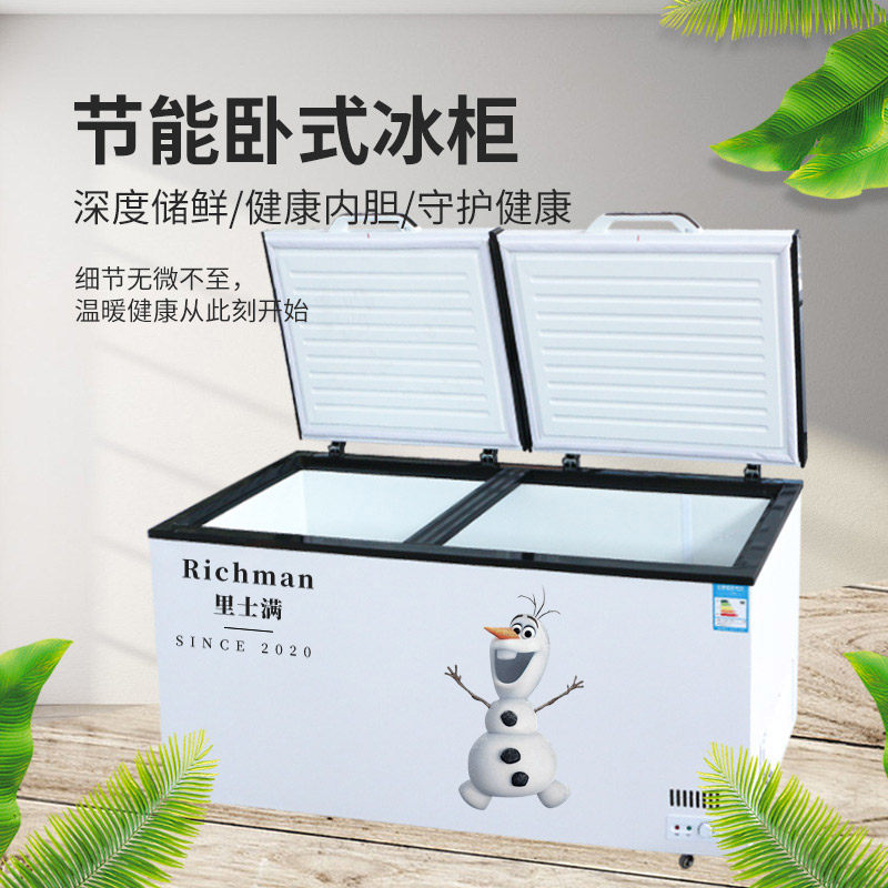 Household commercial freezer large-capacity freezer freezer double-door energy-saving horizontal silent temperature-controlled refrigerator hotel refrigerator