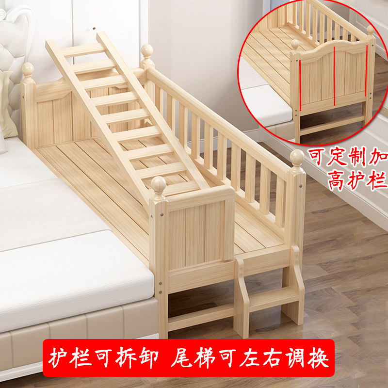 Crib Baby Splicing Solid Wood Children Splicing Boy Crib With Guard Rail Ductility Adjustable Height Widening