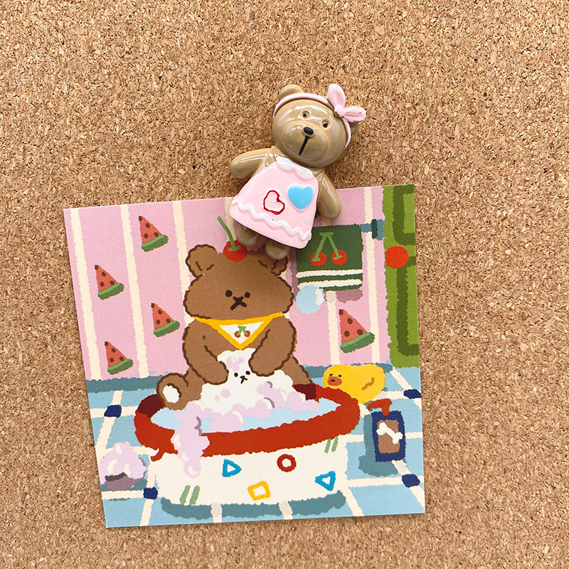 6 creative personality cartoon cute teddy bear push nail cork board photo wall decoration felt board nails