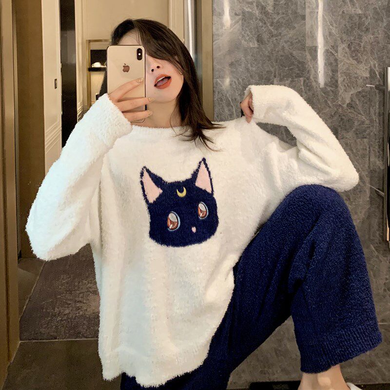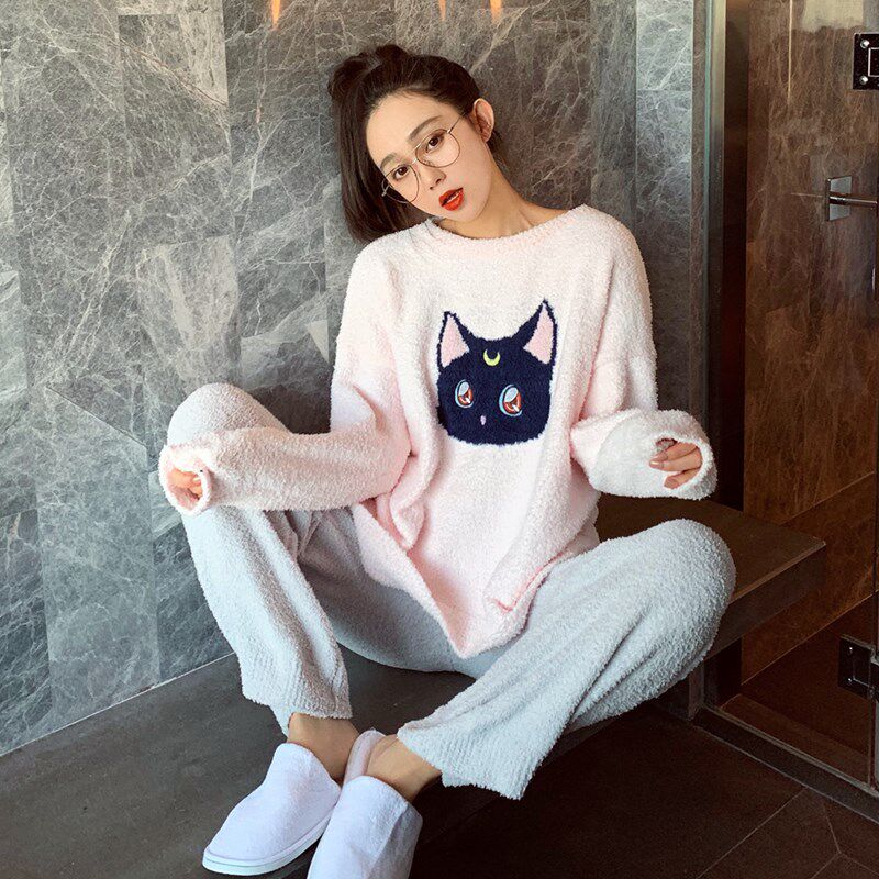 Japanese coral velvet pajamas ladies cute and beautiful girl Luna autumn and winter plus velvet thickening can be worn outside the home clothes suit