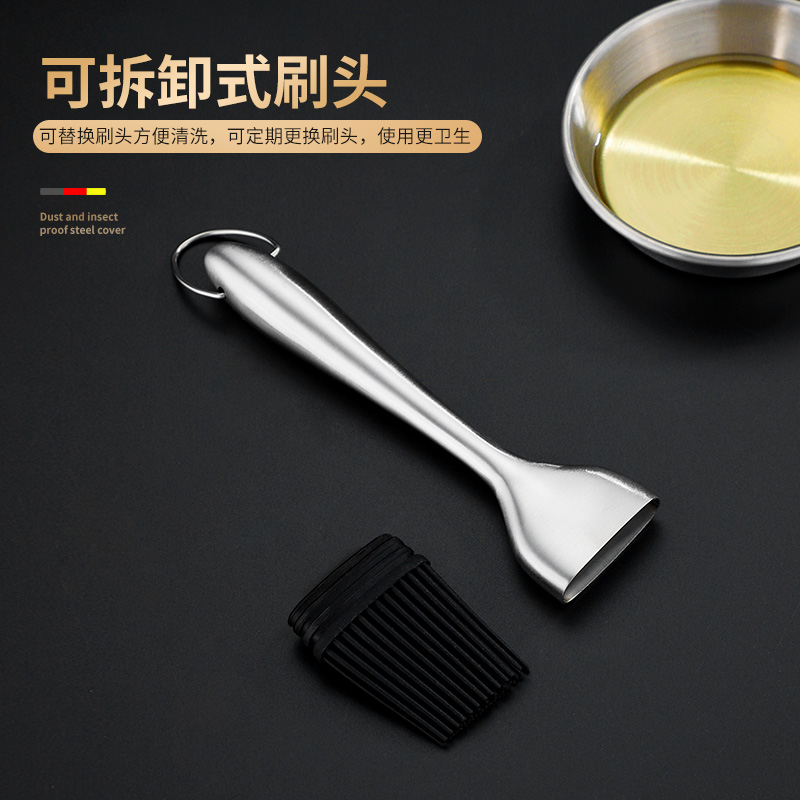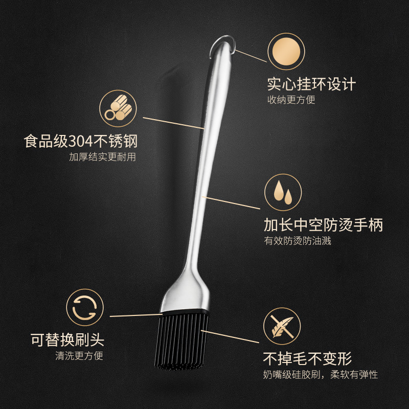 Happy Aini Oil Brush 304 stainless steel Kitchen Seasoning Silicone Brush home High temperature resistant with no hair Barbecue Oil Brush
