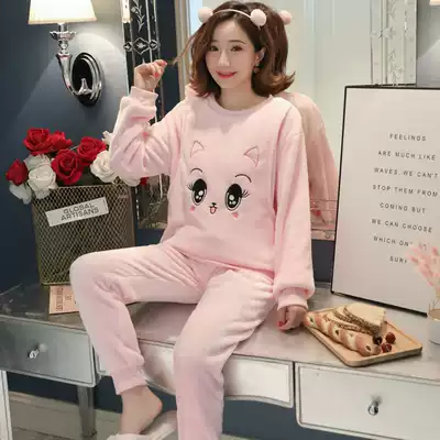 Yuezi clothing autumn and winter postpartum coral thickened plus velvet pregnant pajamas 12 months 11 breastfeeding pregnancy