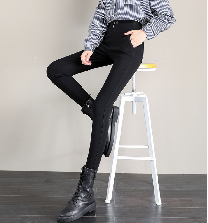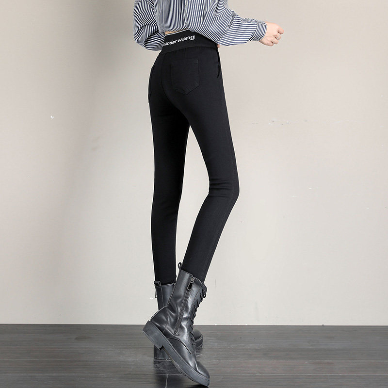 Hong Kong tide brand spring and autumn elastic high-waist tight-fitting slim elastic large size thin legs black pants outerwear female leggings