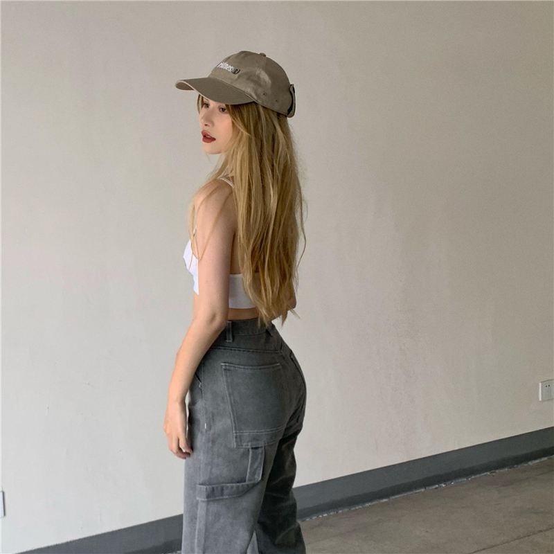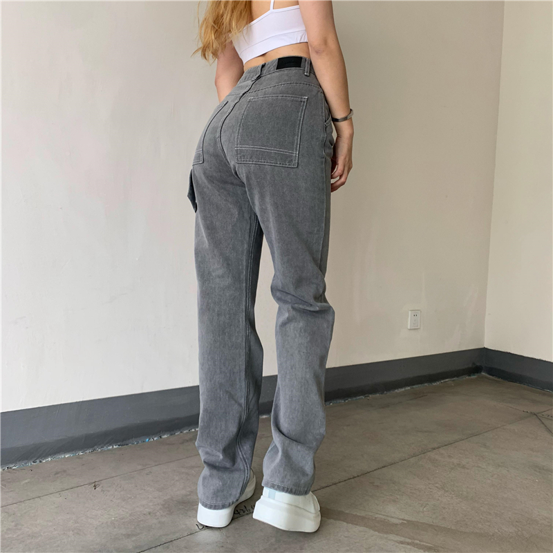 Zyxrwz light blue high waist jeans wide pants female spring summer dark loose display slim 100 lap covety long pants