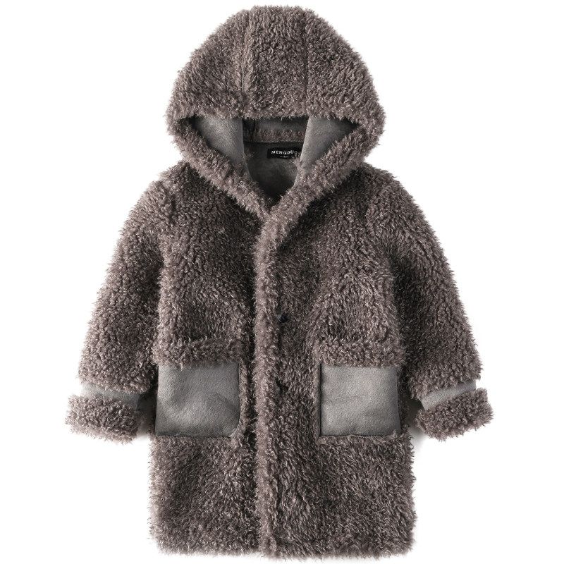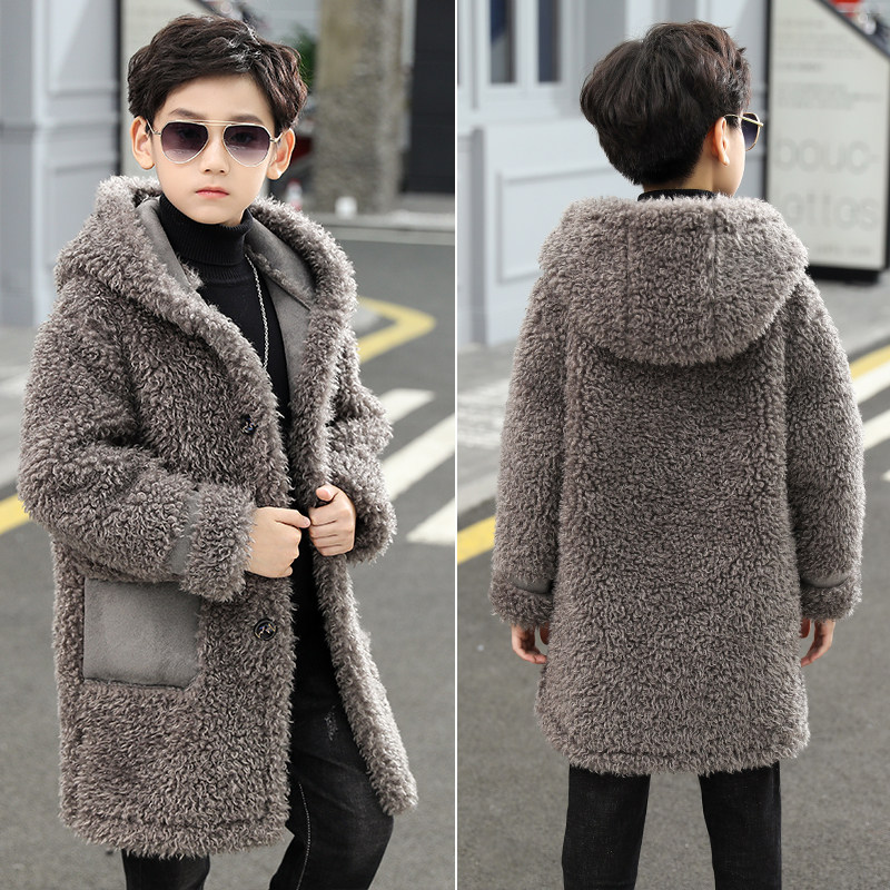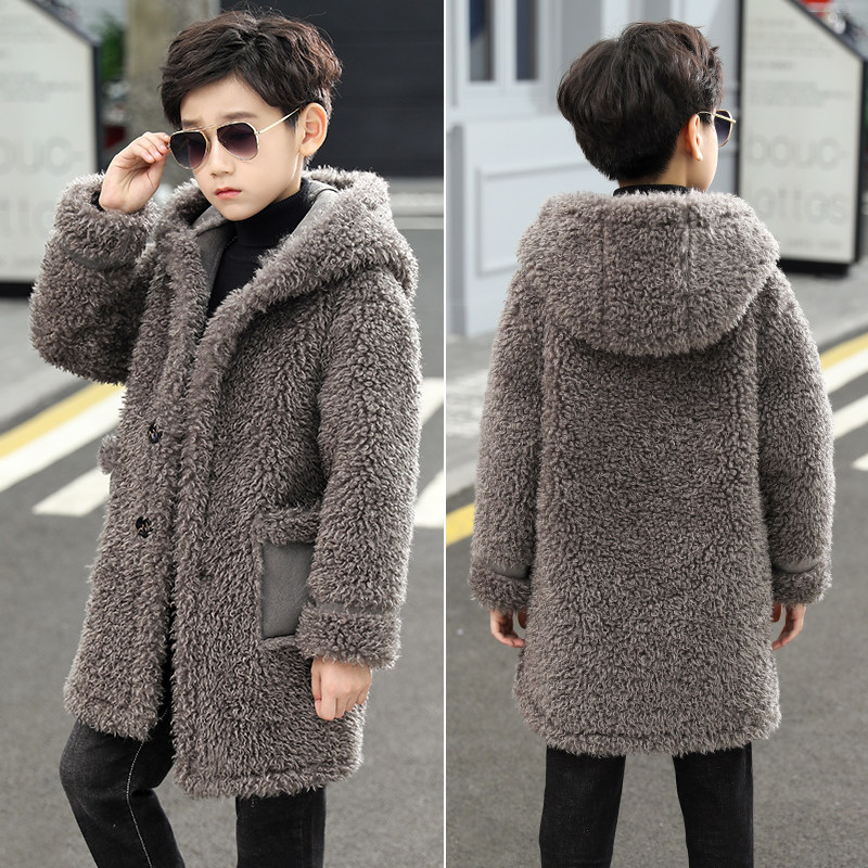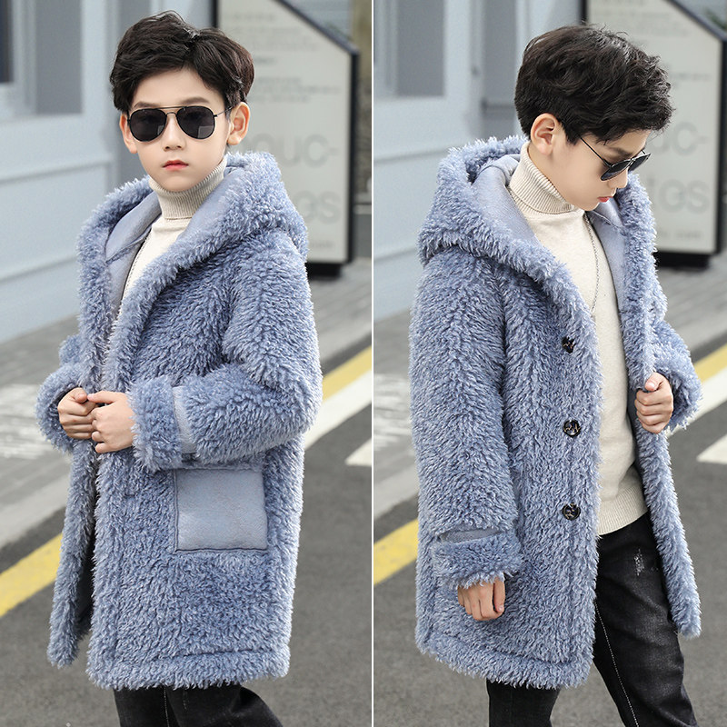 Boys' clothes coat and Han edition of mid - long edition 2022 Fall - winter new fur plus thick coat children