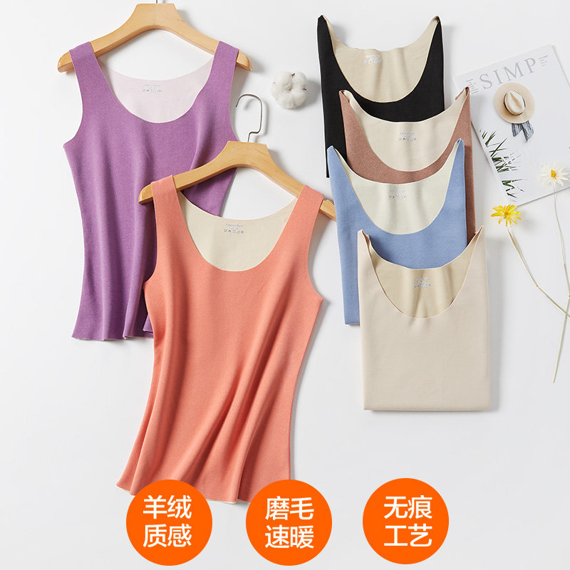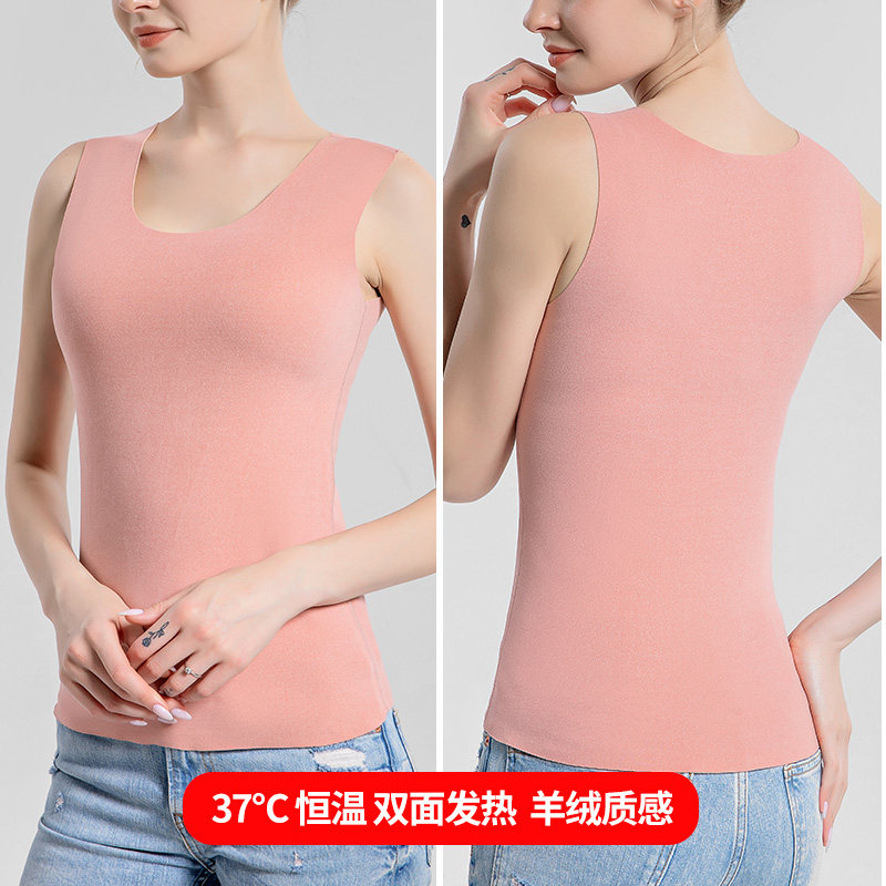 No-mark velvet vest woman plus velvet heating clothes thermostatic double face heating internal wearing anti-chill harness sleeveless jacket autumn
