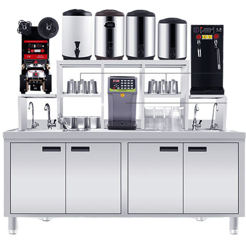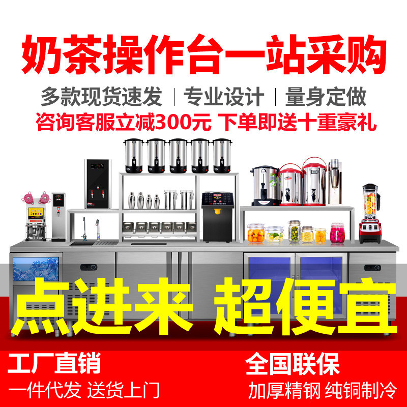 Water Bar Counter Commercial Bench Milk Tea Shop Equipment Full Set Refrigeration Operation Table Milk Tea Machine Snowk Desk Drinker