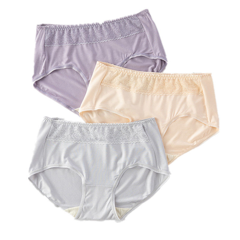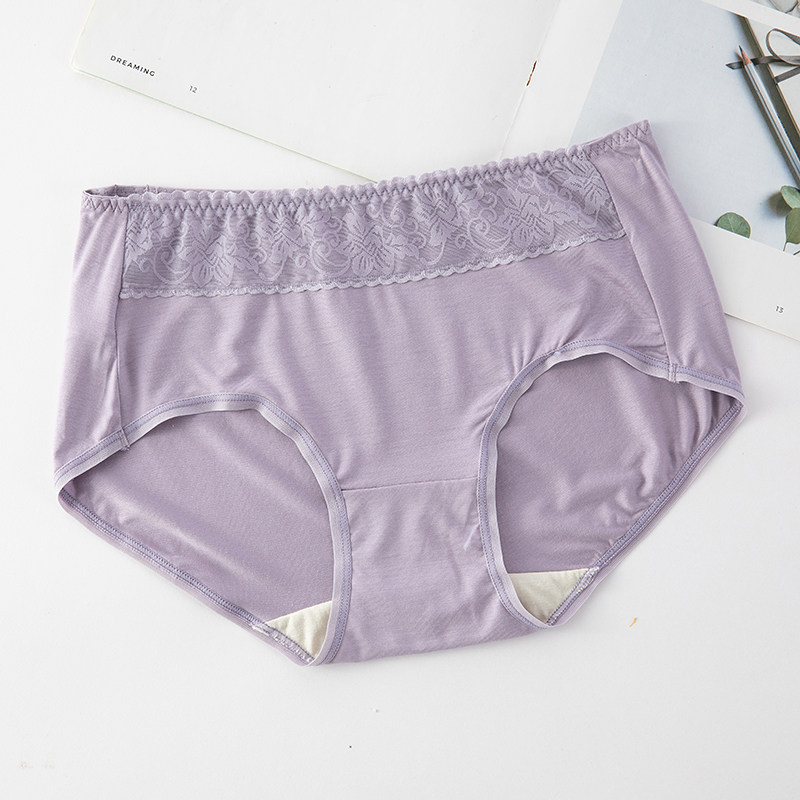 2 Price Butterfly Anfen Lady Mid-Waist Four-corner Underwear Lavish Pure Color Recycled Fiber Cotton Inner Crotch Cassera Lace