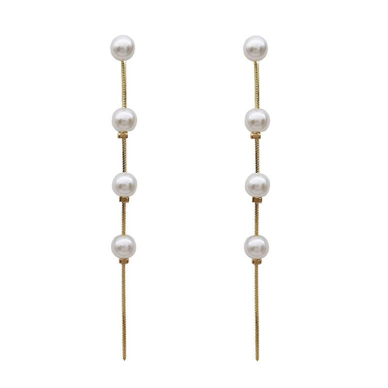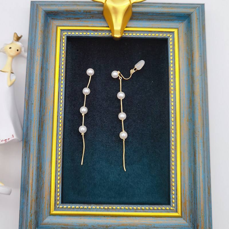 Korean temperament high-end pearl long version ear acupuncture female 925 sterling silver hypoallergenic ear clip no ear hole earrings painless