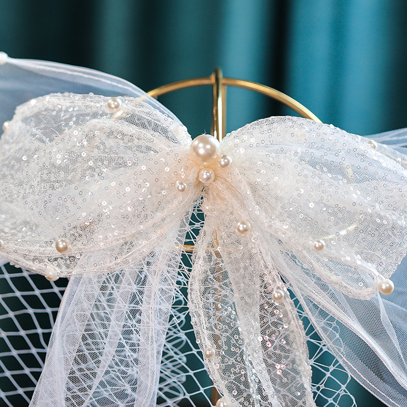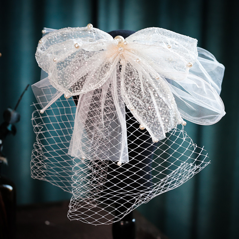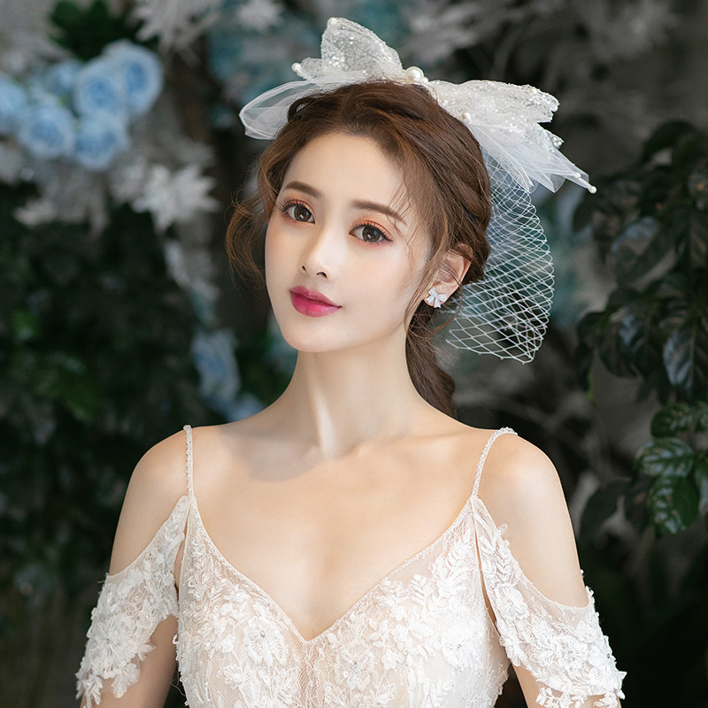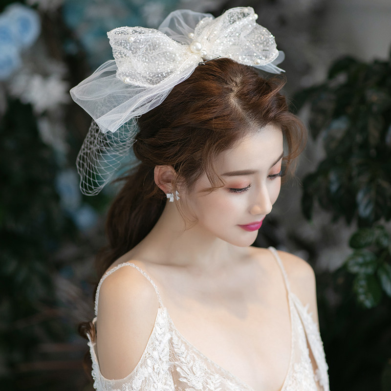 Sen Ensemble Han Style Fairy Beauty Mesh Yarn Big Bright Sheet Butterfly Knot Headwear meritocratic temperament Short-head yarn Wedding Wedding 100 Accessories Accessories