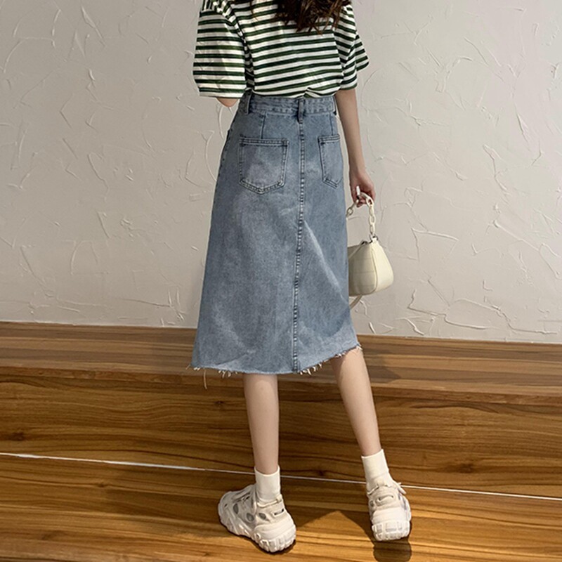 High waist denim skirt women's summer 2022 new large size fat mm large size bag buttocks thin a-line skirt trendy
