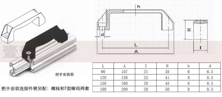 Cabinet door aluminum handle aluminum alloy 90120180 equipment metal handle to thicken high-quality industrial handle
