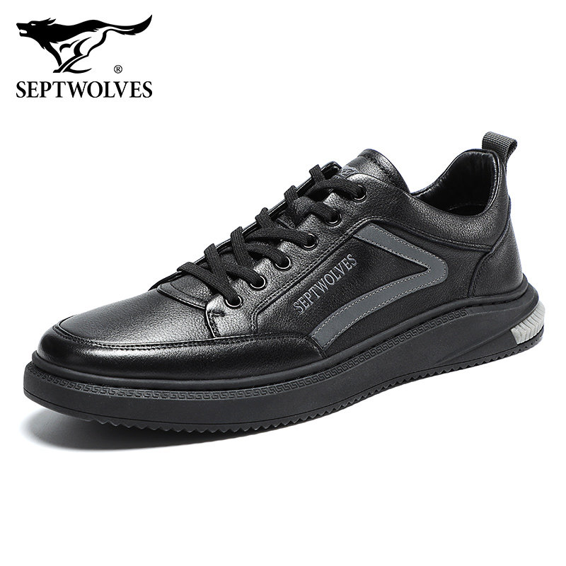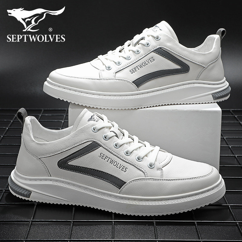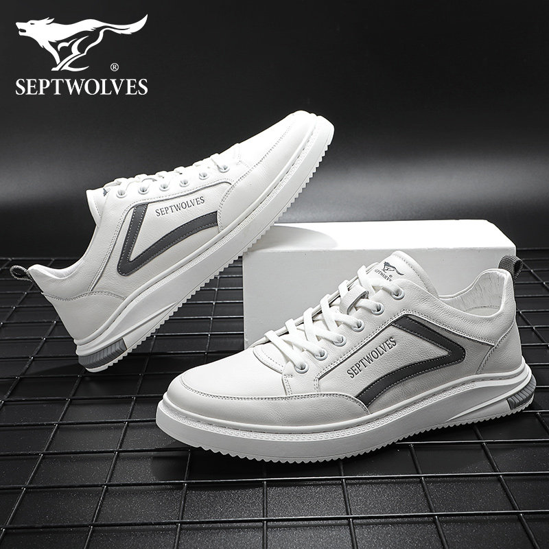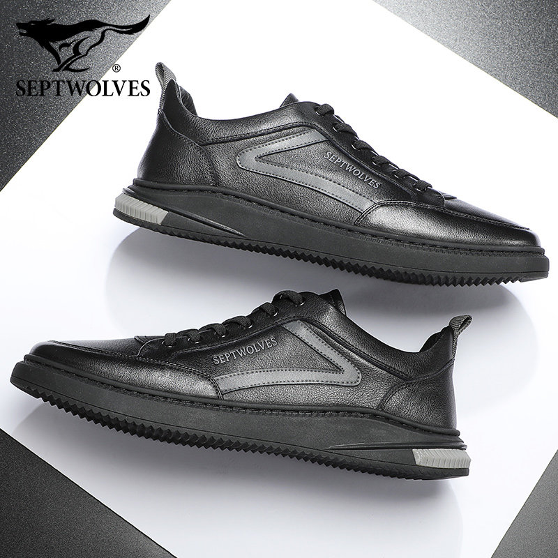 Septwolves men's shoes winter casual leather men's board shoes all-match flat men's trendy shoes leather shoes men's British casual shoes