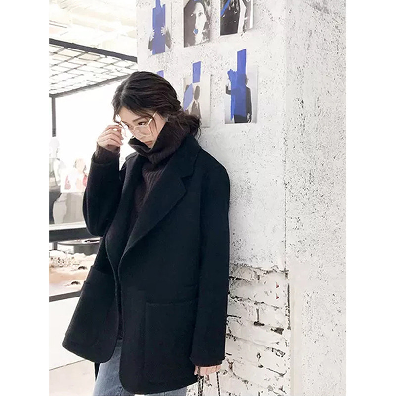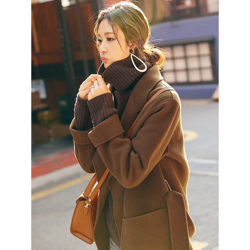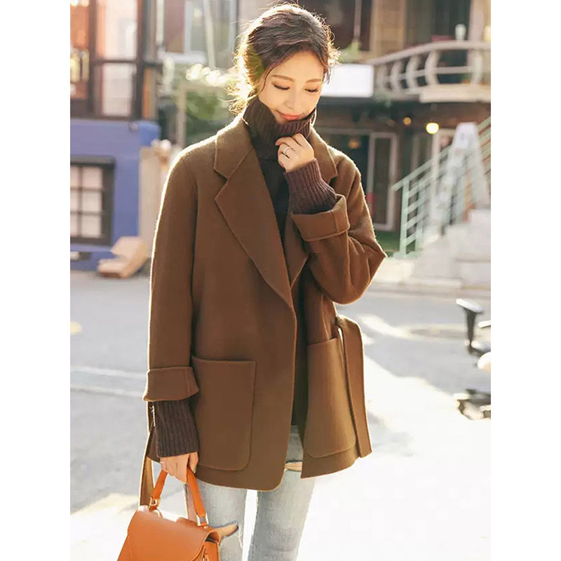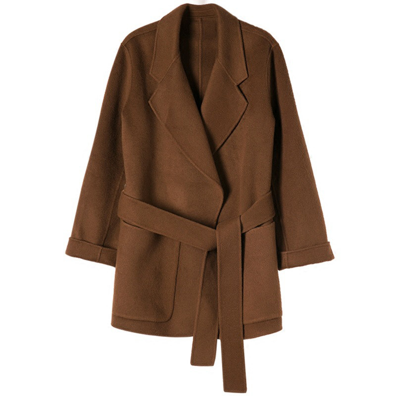 Caramel color double-sided cashmere coat women's short winter new retro tie small thick woolen coat