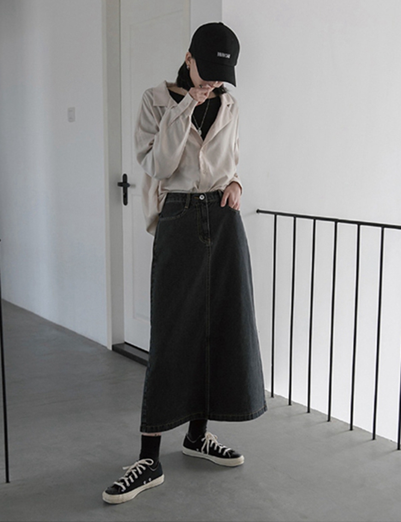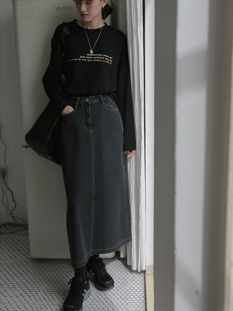 Slit denim skirt women's spring and autumn 2022 new large size high waist thin bag hip A-line long skirt trendy
