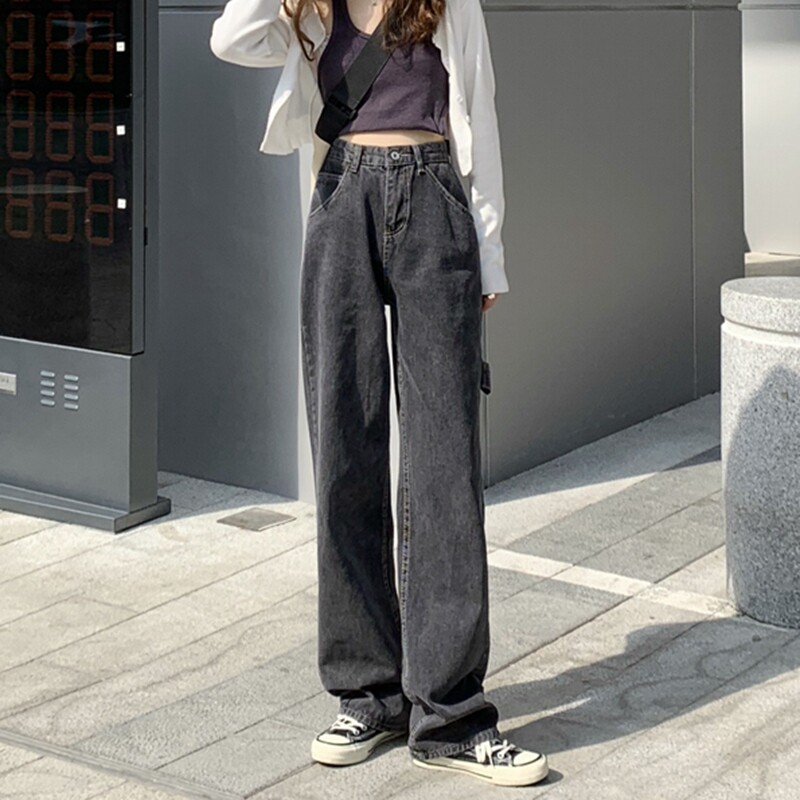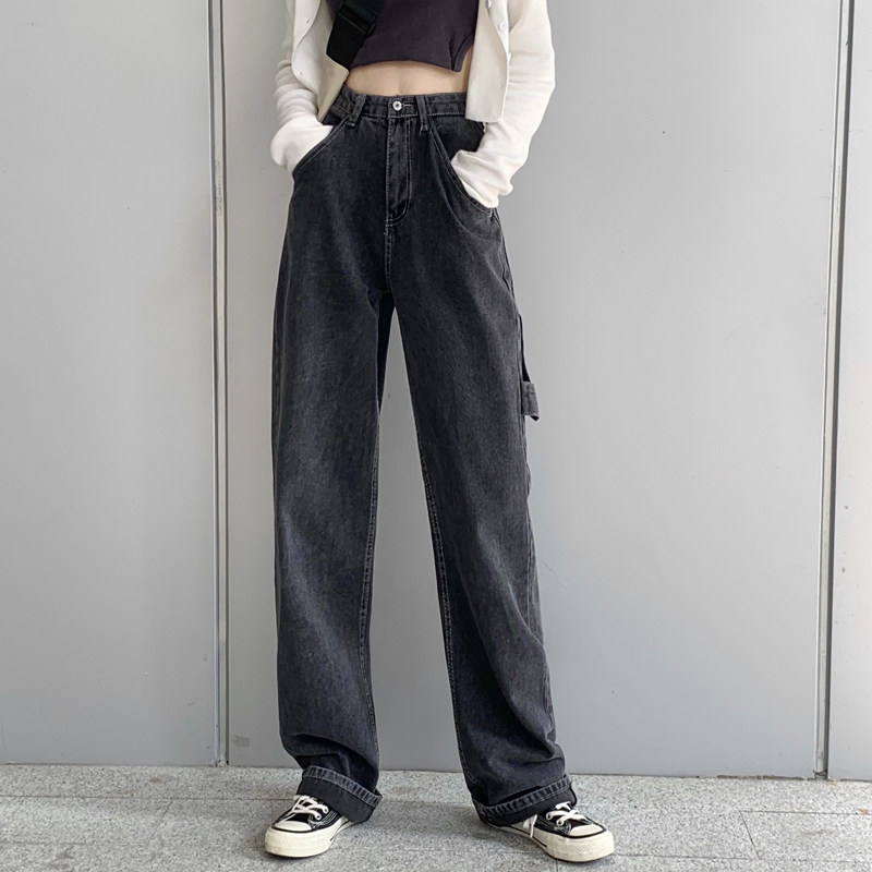 Large size jeans women's spring and autumn 2022 new black high-waisted slim straight-leg mopping wide-leg pants trendy ins