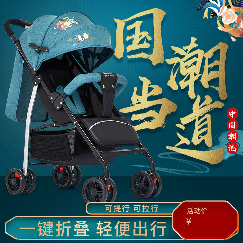 Baby stroller can sit, lie down, light, foldable, baby ultra-light, portable, high-view, easy to walk with one click