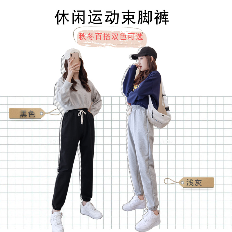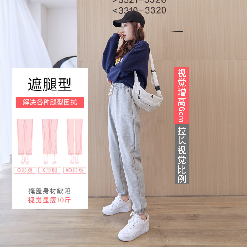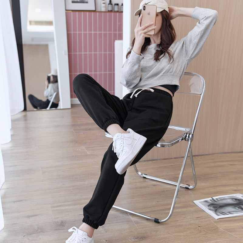 Spring Autumn New Pure Cotton Sports Pants Women Loose Elastic Tightness Tightness Elastic Bunches Slim 100 Hitch Surge Casual Thick Cotton Pants