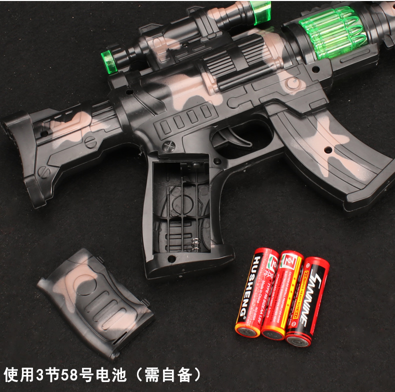 1 machine gun, 3 AA batteries, 5 machine guns, 15 AA batteries