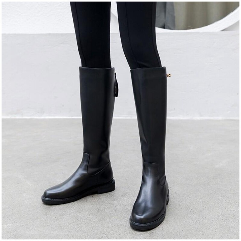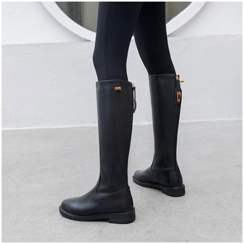 However, knee boots women's 2022 autumn and winter new leather high tube thin riding boots plus velvet small boots