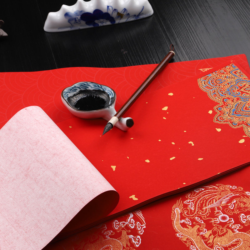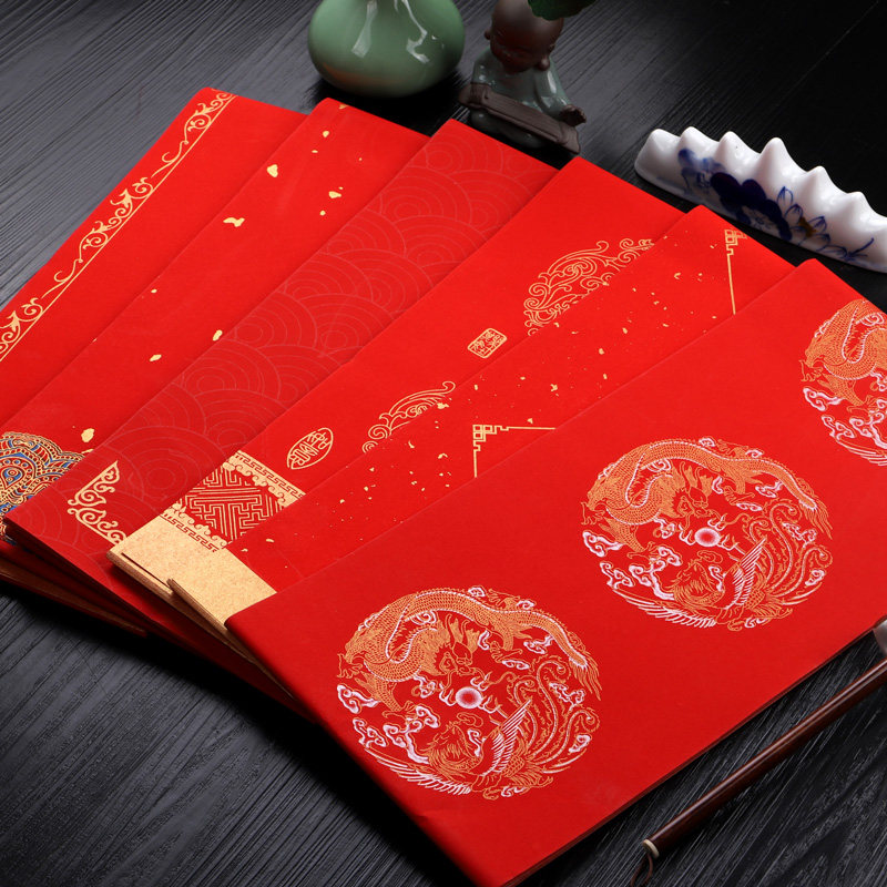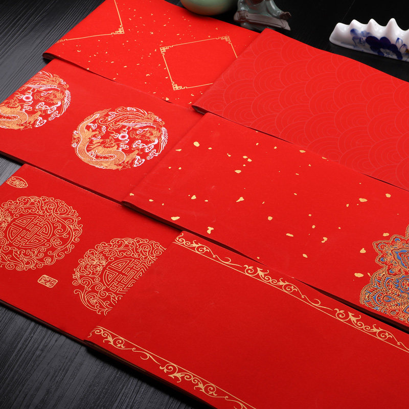 Wax-dyed years red couplets paper handwriting blank Spring couplets Xuan paper Marriage five words Seven words Sprinkle Gold Thickened New Year Red Paper