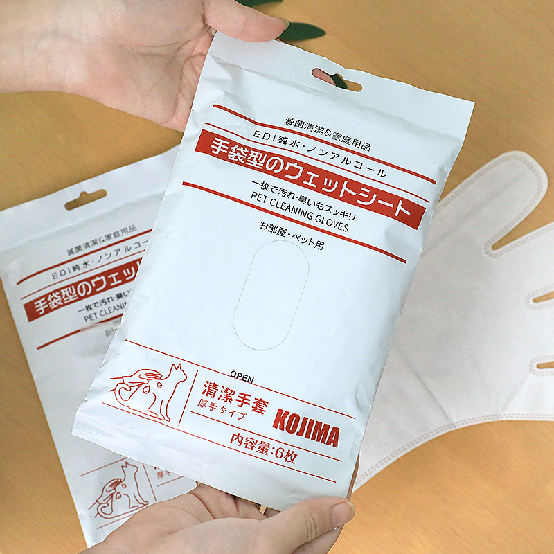 Pet Gloves Kojima Pet Cat and Dog Cleaning Gloves Disposable Body Cleansing Gentle and Non-irritating 6 Bags