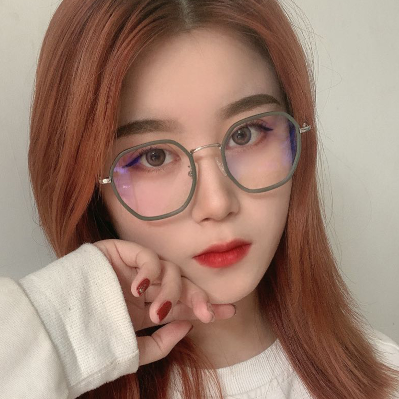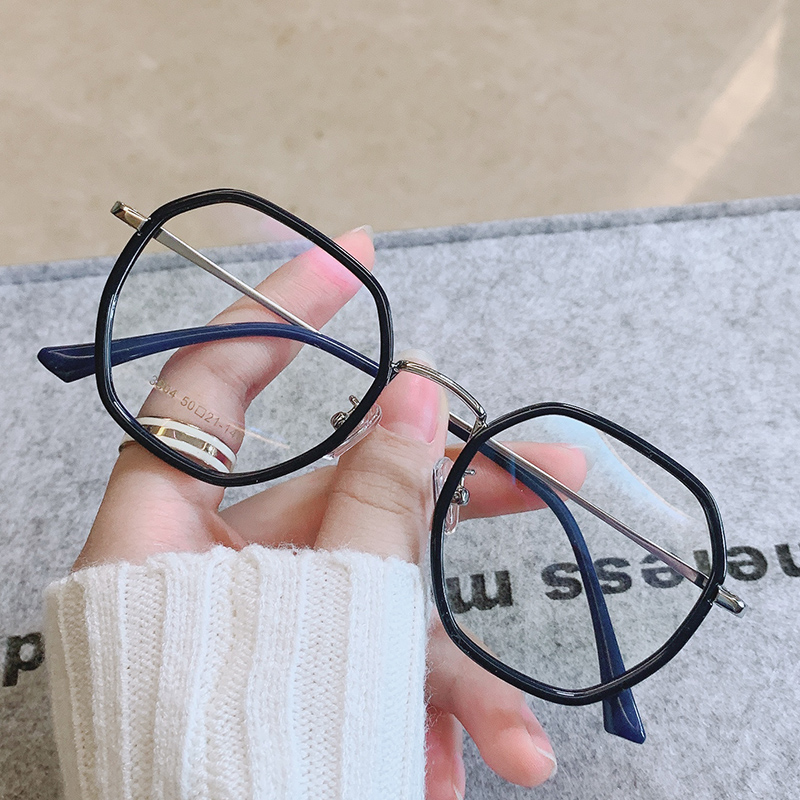 Ultra-light retro polygonal myopia glasses female Korean version wave with degree can be matched with large face and thin vegan eye frame