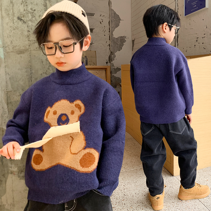 Boys sweater pullover 2022 new children's autumn and winter models plus velvet thickening in the big children's tide children's clothing winter boys