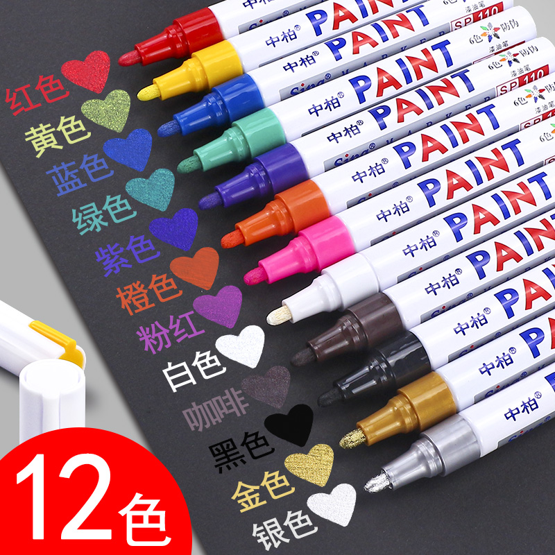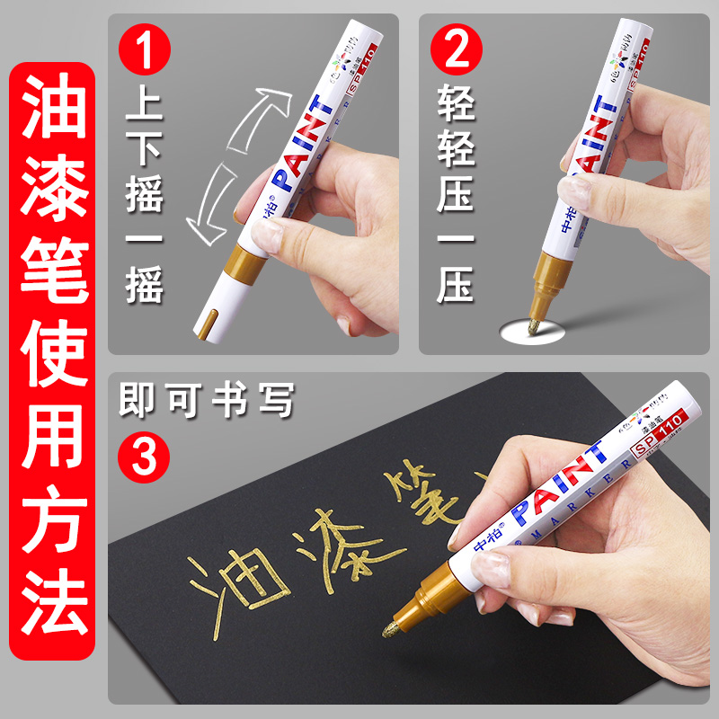 Zhongbai paint pen industry does not fade waterproof tire oily marker pen sp110 red gold white green silver large paint rough head paint painting gold thick black yellow tracing tire white
