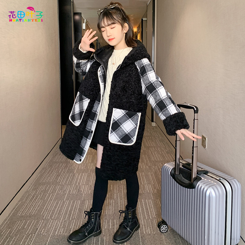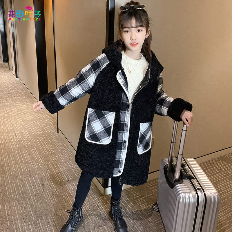 Girls' lamb coat 2021 new foreign style children plus velvet padded mid-length big child lamb velvet autumn and winter clothes