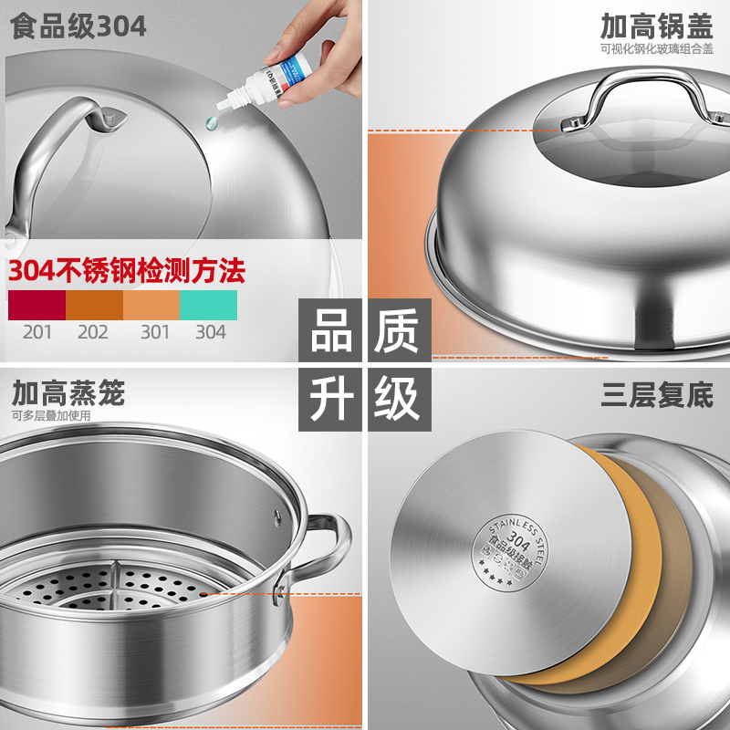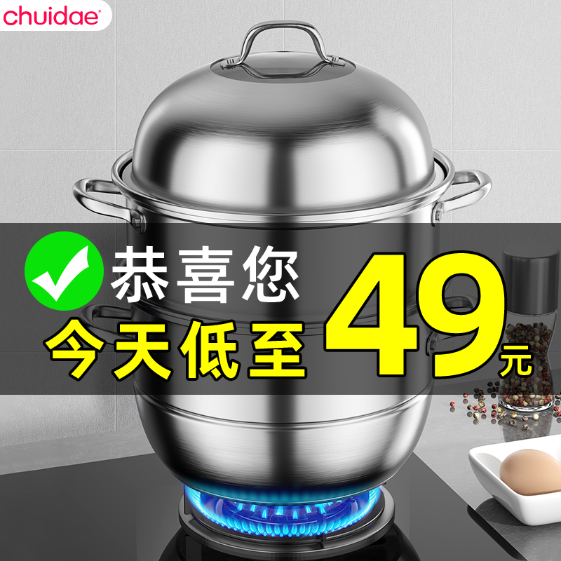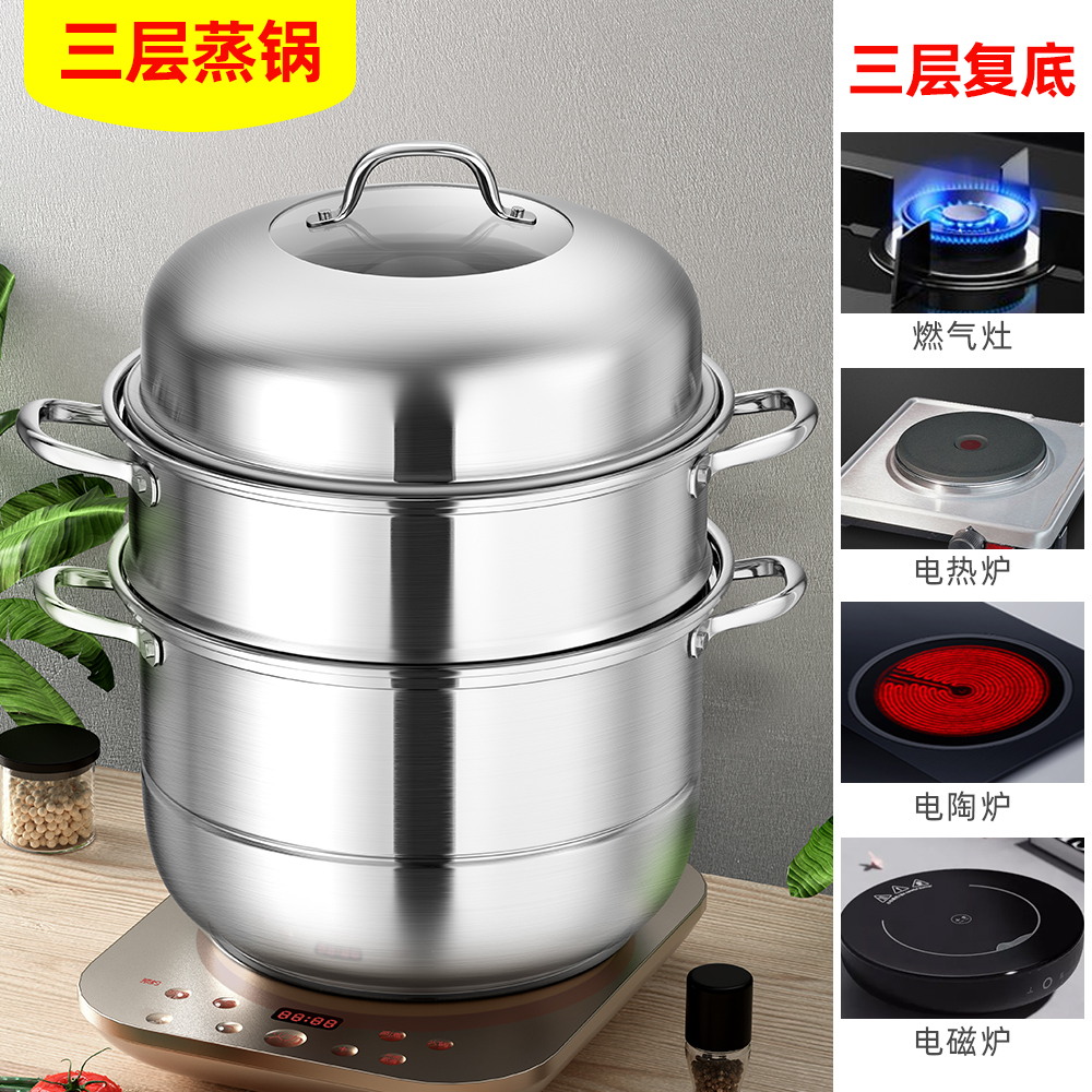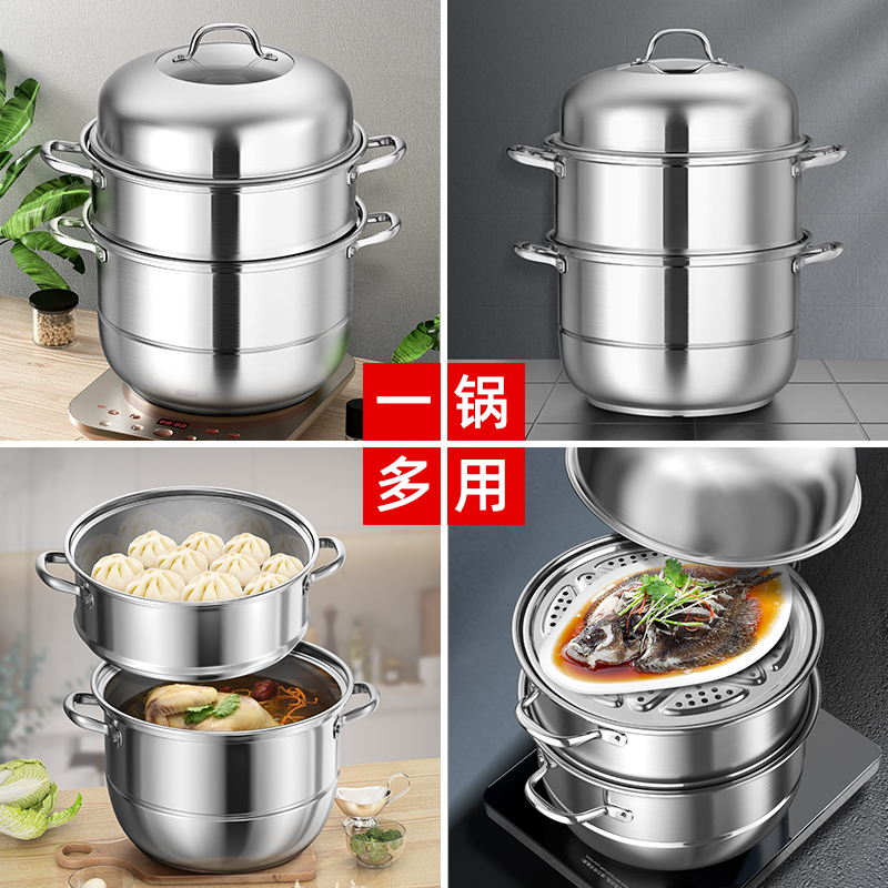 304 stainless steel steamer Household 2-layer thickened large-capacity three-layer multi-function cage steamer Gas stove steamed bun steamer
