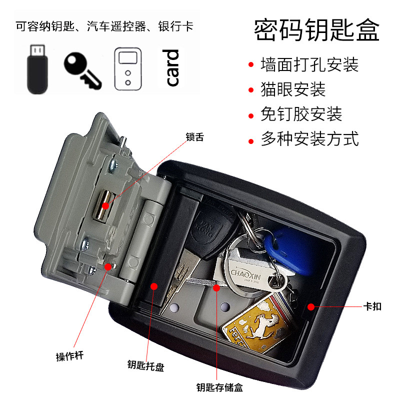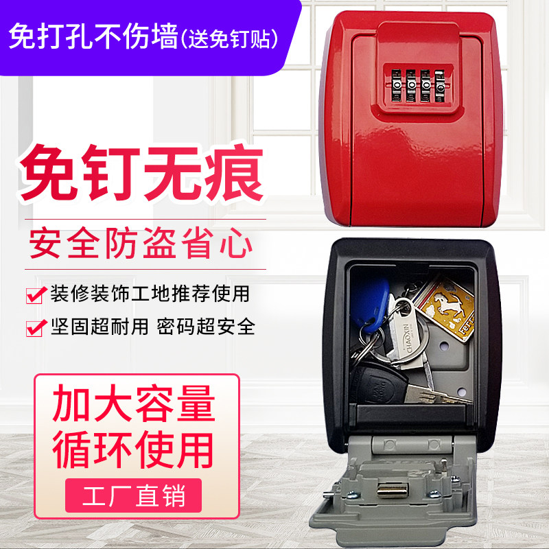 Adhesive-free installation of a close code key box lock cat eye security door opening for domestic private accommodation containing box metal theft protection