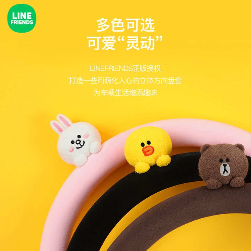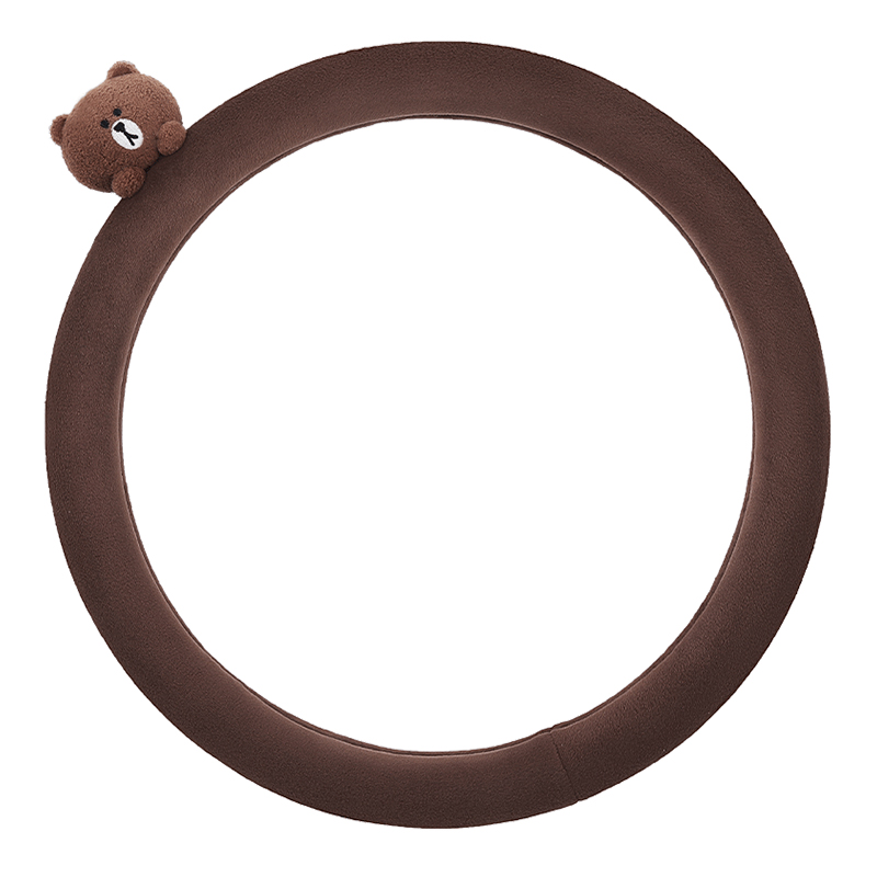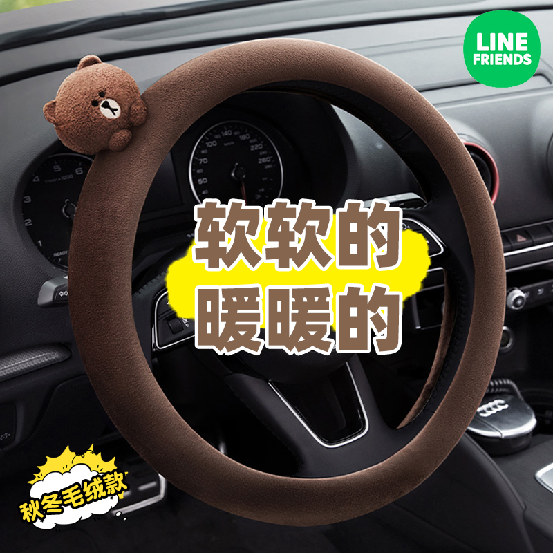 LINE Brown Bear Car Winter Steering Wheel Sleeve Woman All Season Universal Non-slip Sweat plush warm and cute to cover