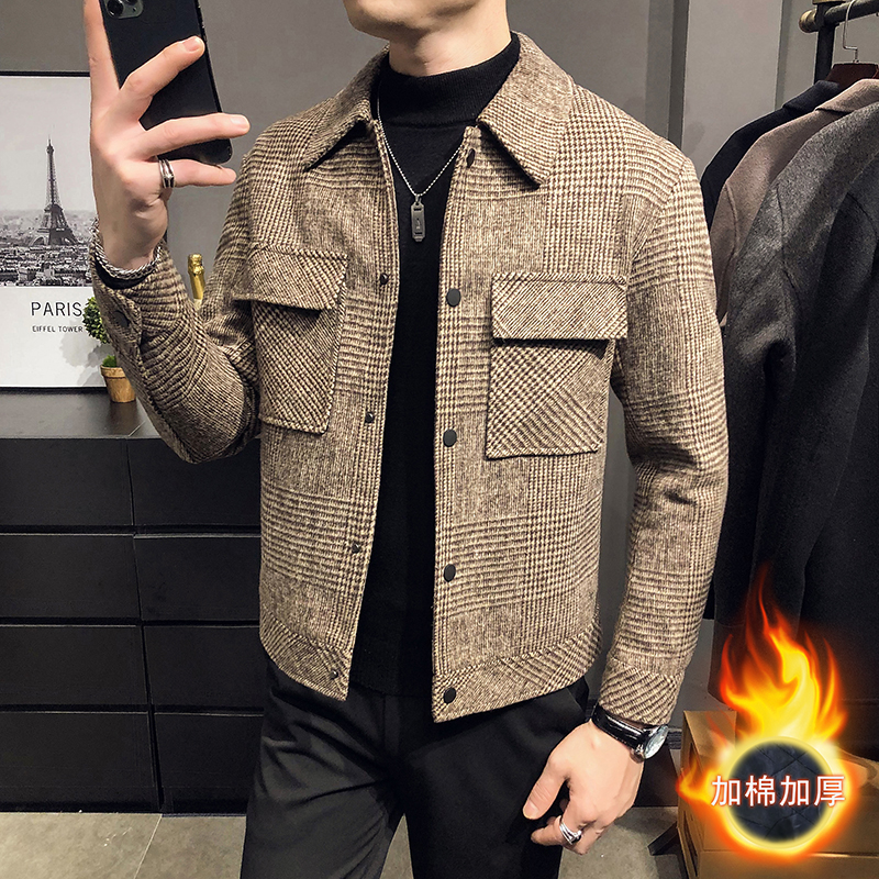 Spring and Autumn Mao Cover male short - form in 2022 new tide - tag casual trend thousand bird grid jacket