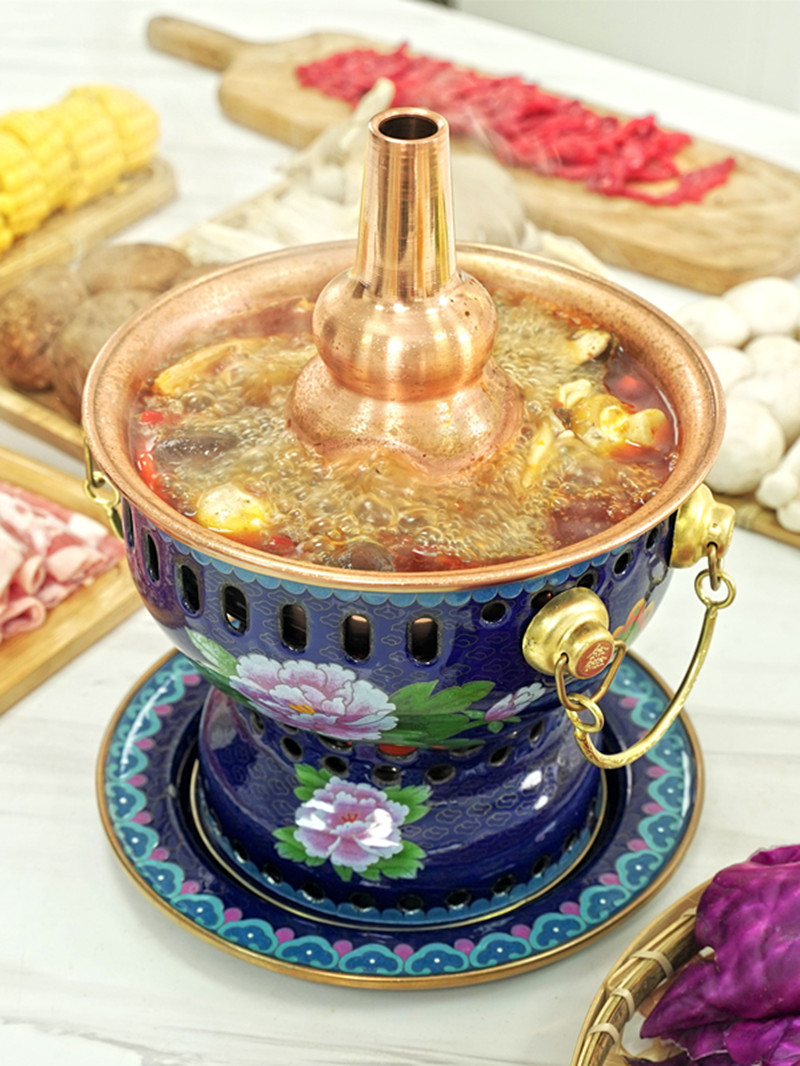 Jingtai Blue Copper Small Hot Pot Single Alcohol Pan Pure Copper Split Meal Enamel Hot Pot Environmental Protection Oil One Pot Small Hot Pot