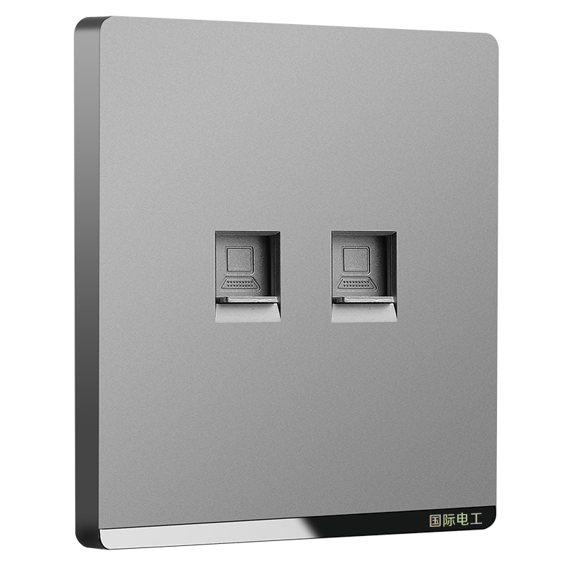 Type 86 hidden two-digit computer socket panel five types of gray network cable network interface socket dual computer